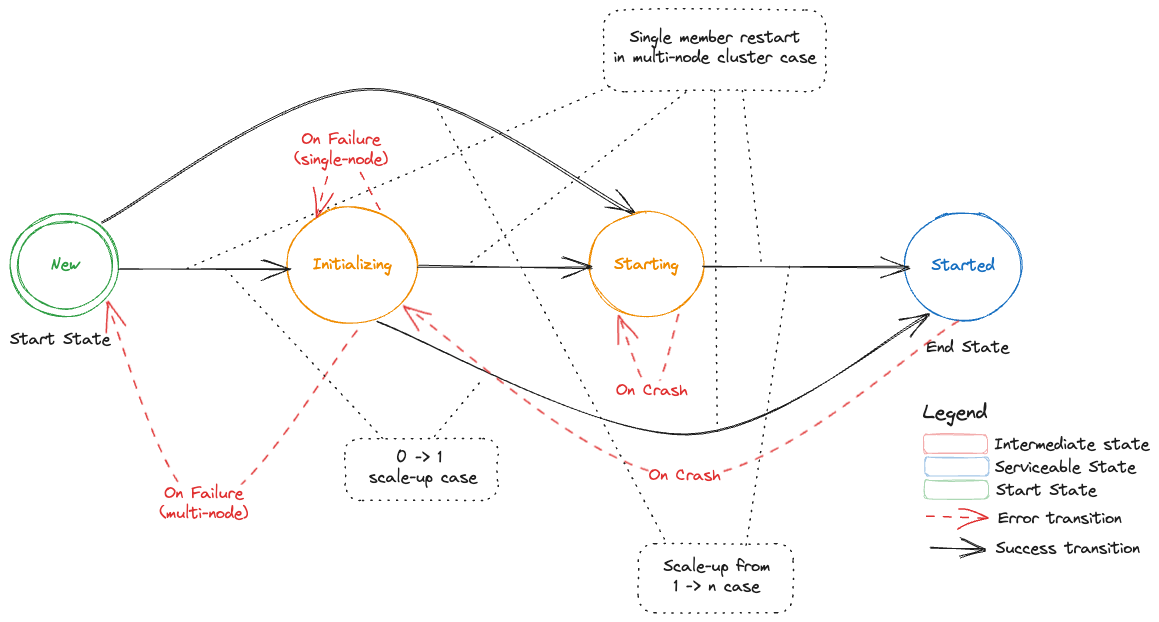 | New | - | Every newly created etcd-member will start in this state and is termed as the initial state or the start state. |